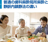 歯を抜いたり、削るときに行う普通の歯科麻酔は、口の中に限局した麻酔ですが、当院でインプラント治療の時に行う静脈内鎮静法による麻酔は、麻酔専門医による全身管理下で眠ったような状態で行う麻酔の事です。